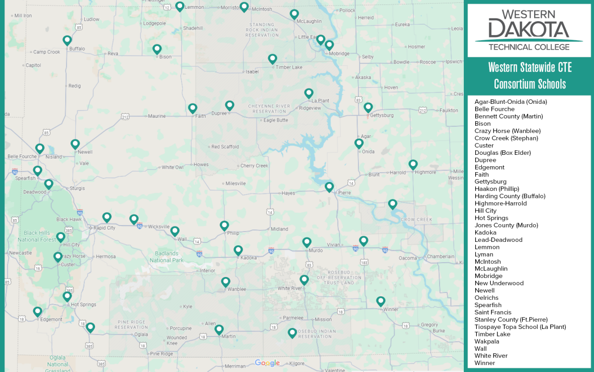 The Western Statewide CTE Consortium brings school districts together to strengthen Career and Technical Education (CTE) programming and collectively collaborate with the support of Perkins V funding. We strive to encourage, connect and strengthen relationships between school districts, technical colleges, industry and all areas of CTE in South Dakota.